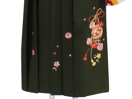 商品 抹茶系のぼかし袴に華やかな花と毬の刺繍をあしらった婦人袴です。