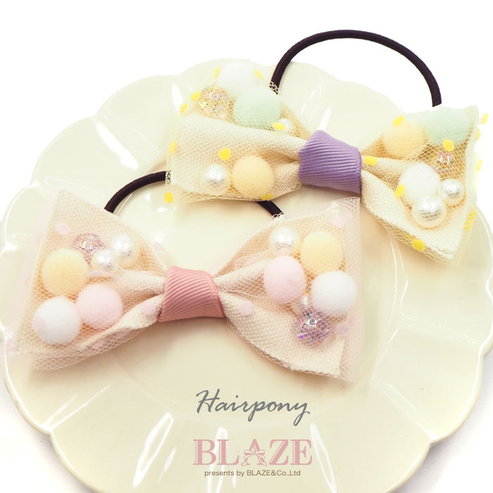 編みパーツ ヘアゴム さくらんぼ 2個セット BLAZE ヘアアクセサリー キッズ 子供 フルーツ さくらんぼ チェリー 花 フラワー ポンポン 苺 いちご