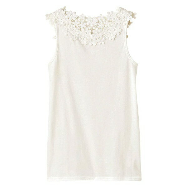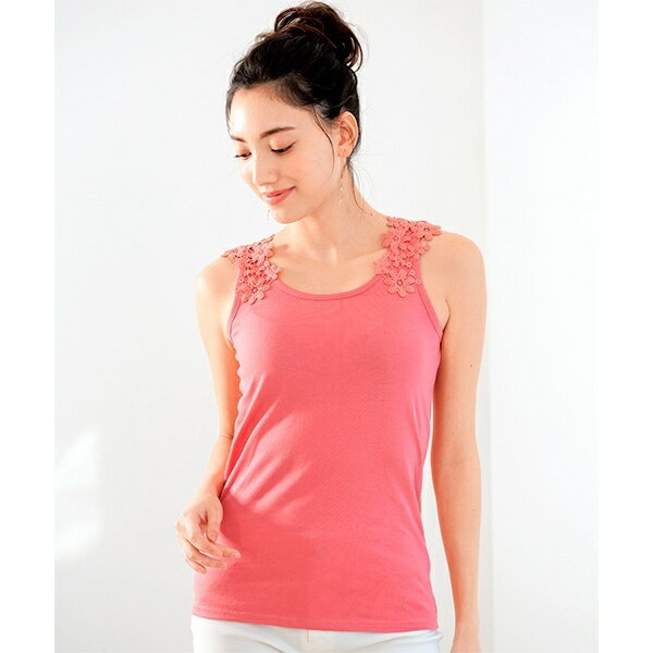 ラナンの後姿がきれい!バックレースタンクトップ咲き誇る花レースで肩も背中も美人見せ 肩と背中にあしらった花レースがエレガント。