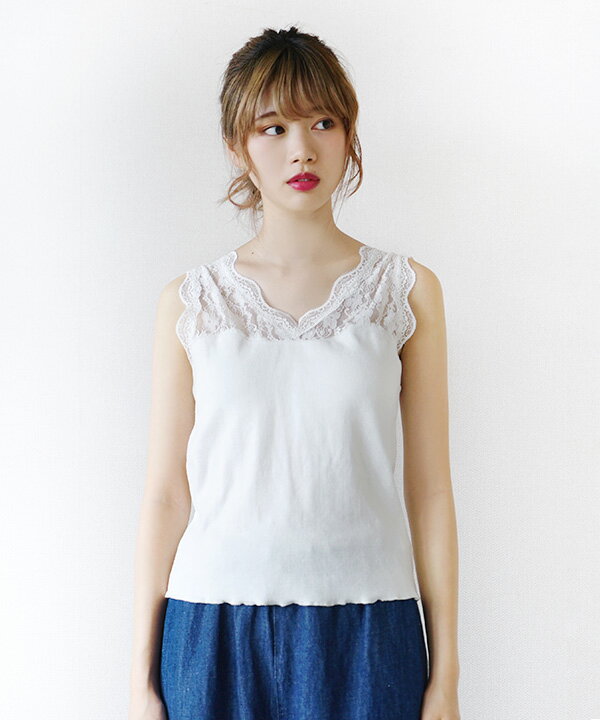 あえて「魅せる」トレンドタンクトップ繊細な花柄レースが特徴のカップ付きタンクトップ。